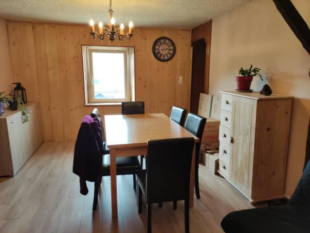 Ferme de village individuelle composé de 2 logements habitables et un logement de 3 pièces à rénover ,chacun avec entrée indépendante, grange écuries et dépendances, proche du tous commerces. située dans une impasse; chauffage poêle a bois uniquement. Huisseries en DV pour 2 logements.